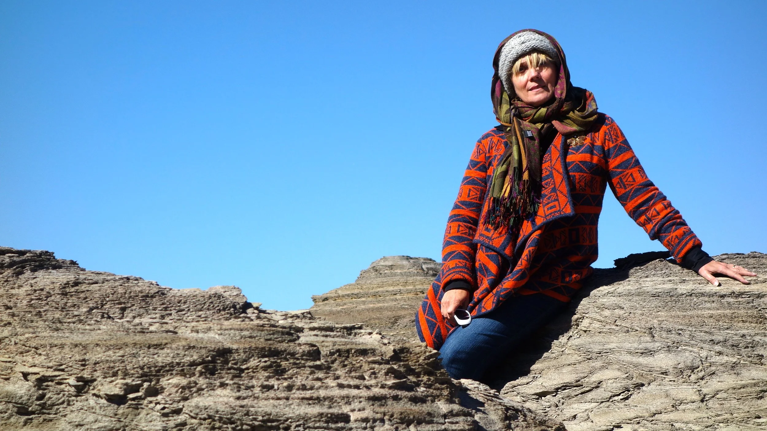 Jill at the Goblin Hollow fossil bed in Logan County, Kansas. Photo by Bob Aicher